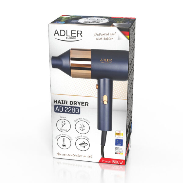 Adler AD2280 er öflugur og fjölhæfur hárblásari með 1800W afli sem hentar jafnt í daglega hárumhirðu sem og í faglegri mótun.