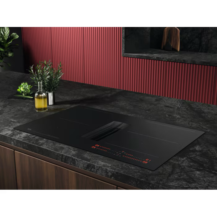 Spanhelluborð frá AEG með innbyggðri viftu, sameinar tvö eldhústæki í eitt og mætir þannig helstu þörfum eldhússins. Helluborðið er með samtengjanlegum hellum með SenseFry og kraftmikilli viftu.