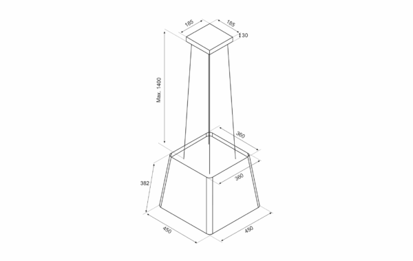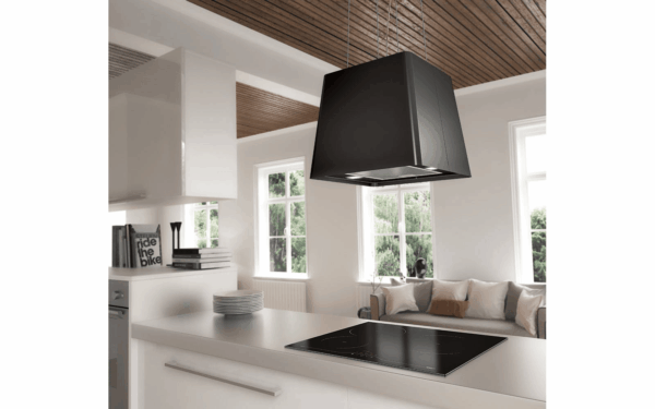 F164 eyjuháfurinn er með svörtum kúpli, nettur og hangir í vírum niður úr loftinu. Háfurinn hentar vel þar sem er hallandi loft. Kolafilter Þessi eyjuháfur er eingöngu ætlaður fyrir kolafilter og því er ekki hægt að tengja hann við útblástur. Skipta þarf reglulega um kolafilter eða á eins til tveggja ára fresti. Kolafilter fylgir með.99.990 kr.