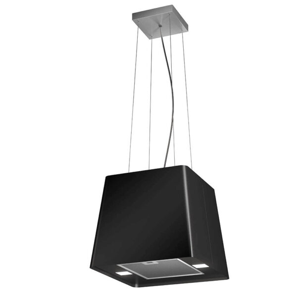 F164 eyjuháfurinn er með svörtum kúpli, nettur og hangir í vírum niður úr loftinu. Háfurinn hentar vel þar sem er hallandi loft.