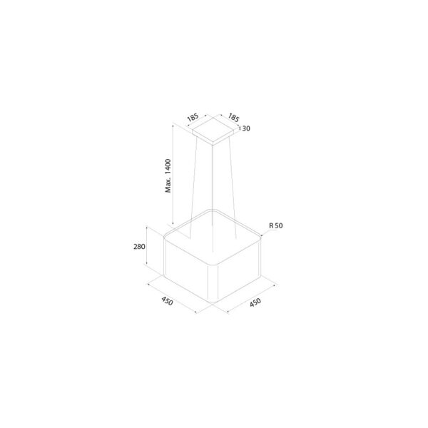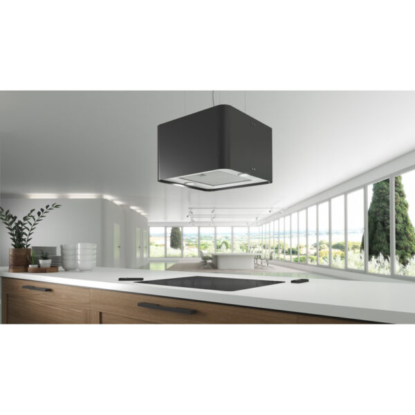 F181 eyjuháfurinn er með svörtum kúpli og hangir í vírum niður úr loftinu. Háfurinn hentar vel þar sem er hallandi loft.Kolafilter