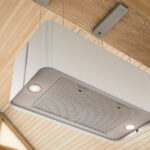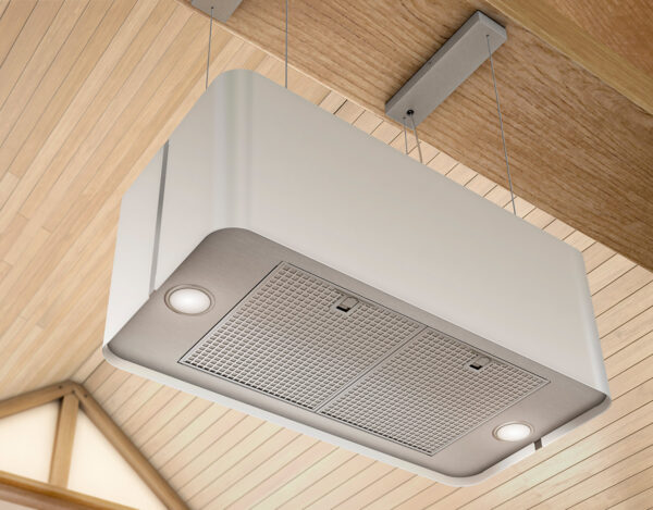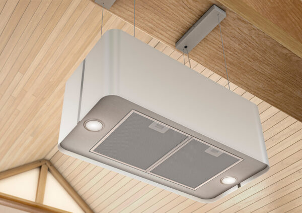 F181 eyjuháfurinn er með svörtum kúpli og hangir í vírum niður úr loftinu. Háfurinn hentar þar sem er hallandi loft.