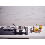 Er úr ryðfríu stáli og getur því hitnað. Gott tak er á handfanginu og því er auðvelt að færa pönnuna til.
