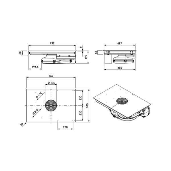 Tekur minna pláss í innréttingunni en sambærileg helluborð þar sem ekki þarf að stytta tvær neðri skúffurnar. Sem þýðir meira pláss fyrir potta og pönnur.