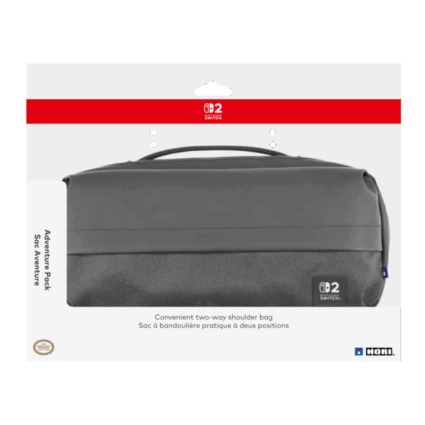 Hori Adventure Pack er fjölnota taska fyrir Nintendo Switch 2 sem hentar fullkomlega á ferðalögum. Hún rúmar bæði leikjatölvuna í hulstri, hleðslutæki, leikjakort og annað smálegt – allt snyrtilega og örugglega.