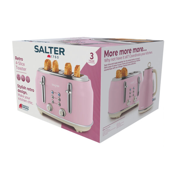 Salter Retro brauðrist 4 sn., bleik